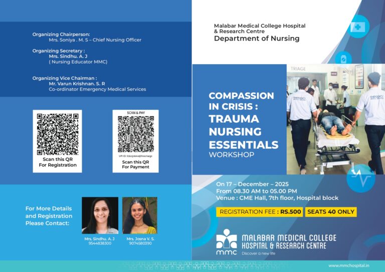 Dr. Venugopalan will be serving as Faculty at the Trauma Nursing Essentials Workshop organized by the Department of Nursing, Malabar Medical College Hospital & Research Centre.
