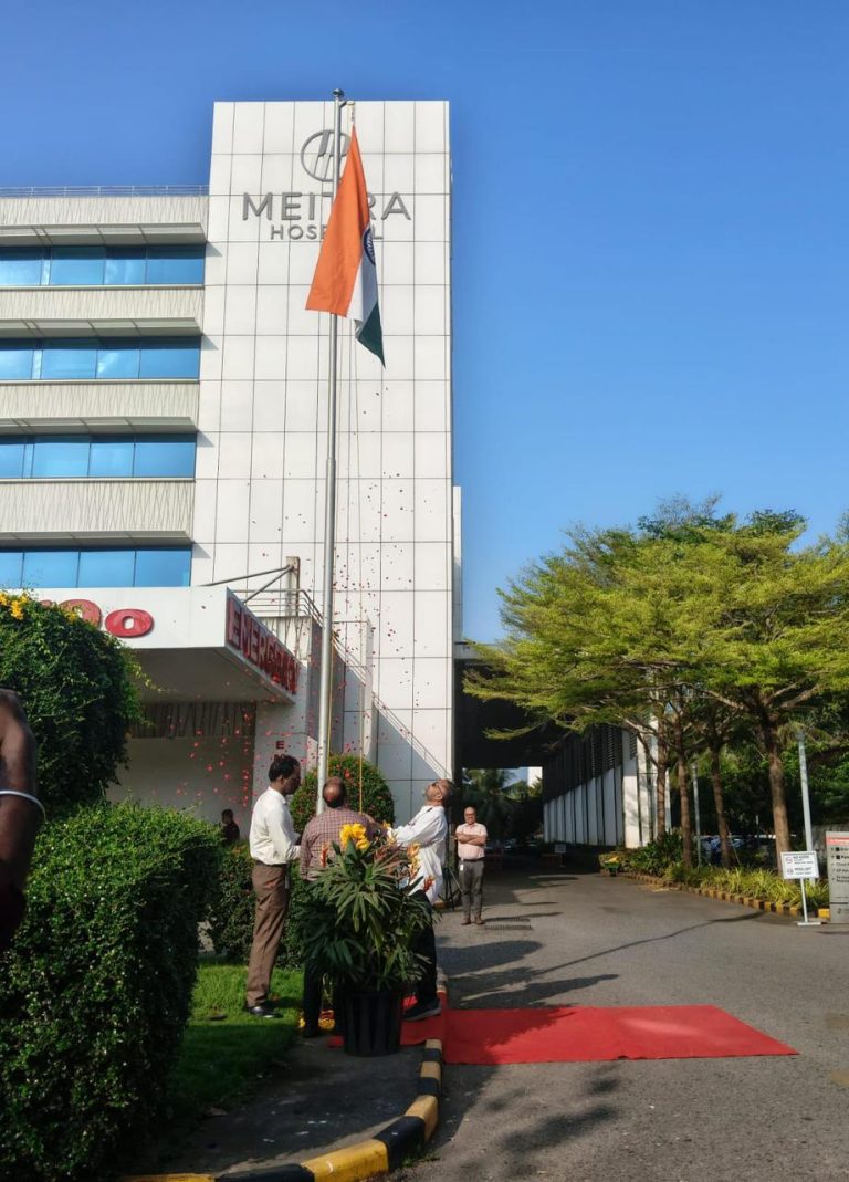 Dr. Venugopalan had the honour of Unfurling the National Flag at Meitra Hospital as part of the 77th Republic Day celebrations. He also received the Guard of Honour and addressed the hospital’s security personnel and staff on this proud national occasion.